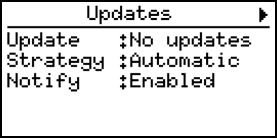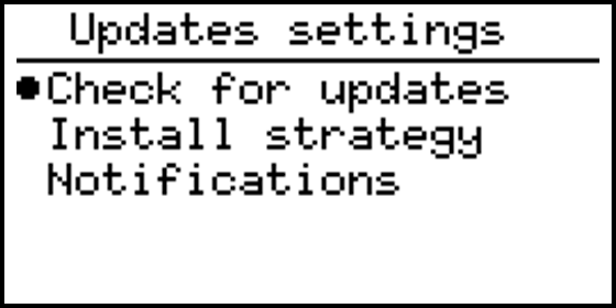 - Manual: If enabled a notification is shown when an update is available. The device will not automatically install updates.