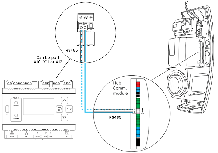 The RS485 cable should be connected to the RS485 port on each G3 HUB as shown in the figure below.