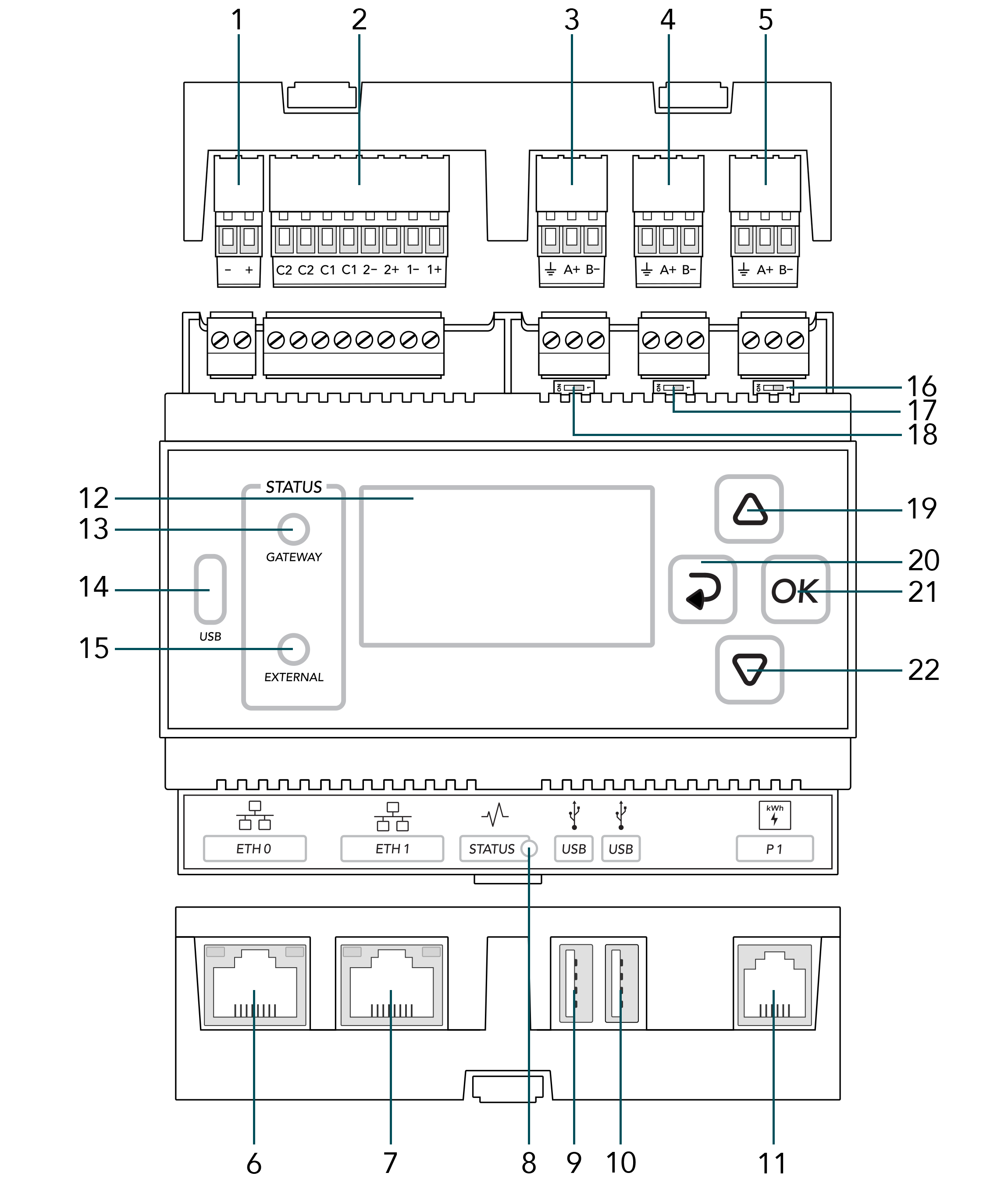 | 1 | B- | RS485 Negative signal |