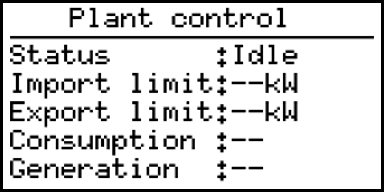 When no plant control is active the plant control page shows a idle status: