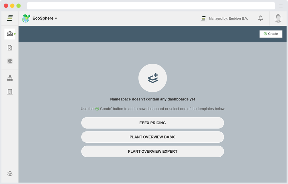 Daarnaast kunnen gebruikers bij het maken van een dashboard openen en indien gewenst een van de templates selecteren. Als er geen template wordt geselecteerd, wordt een leeg dashboard aangemaakt.
